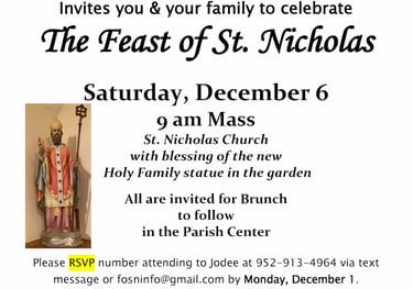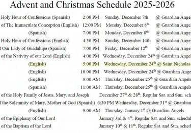 Our Masses of the Immaculate Conception of the Blessed Virgin Mary will take place at Guardian Angels Church in Chaska on Monday, December 8th at 12:00 p.m. in English and 7:00 p.m. Bilingual. This is a Holy Day of Obligation.