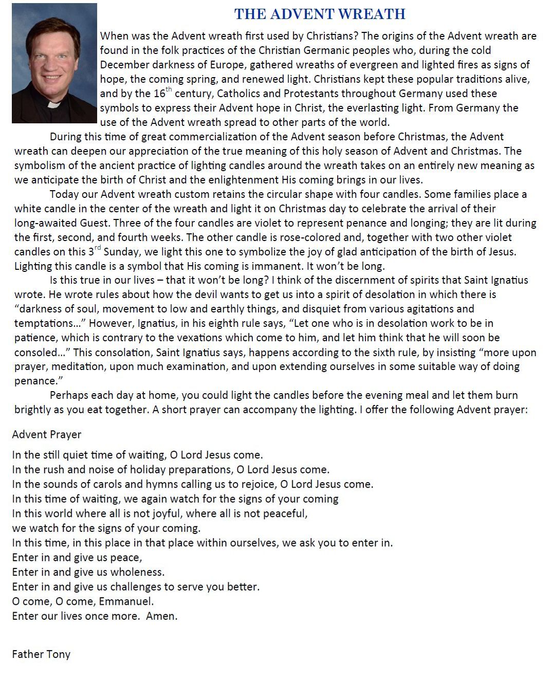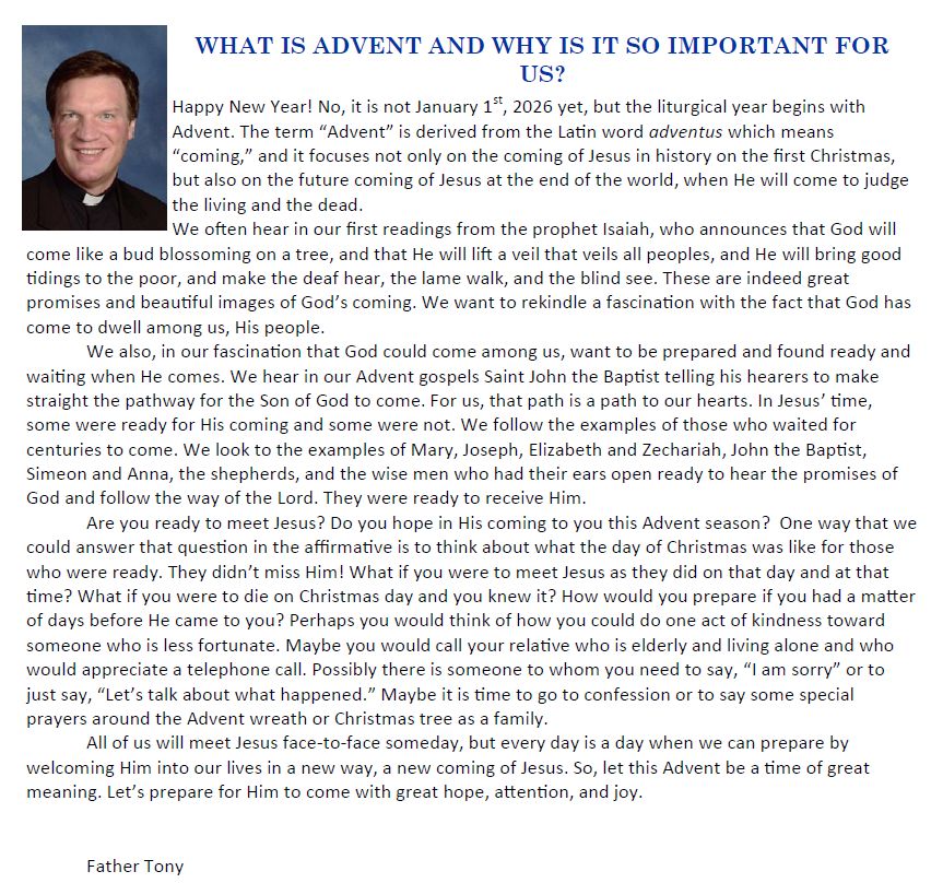 1st Sunday of Advent Message from Father Tony