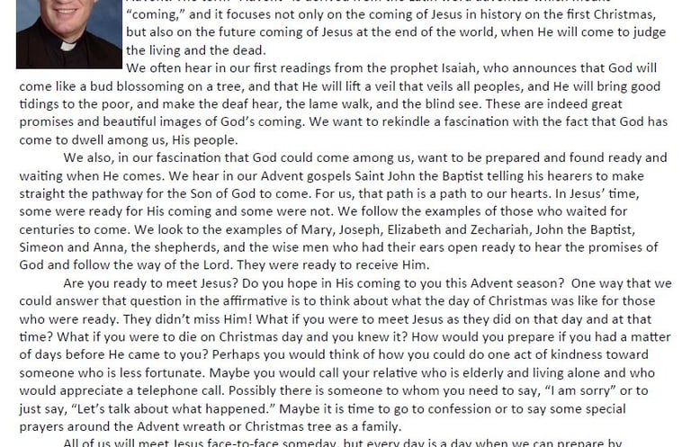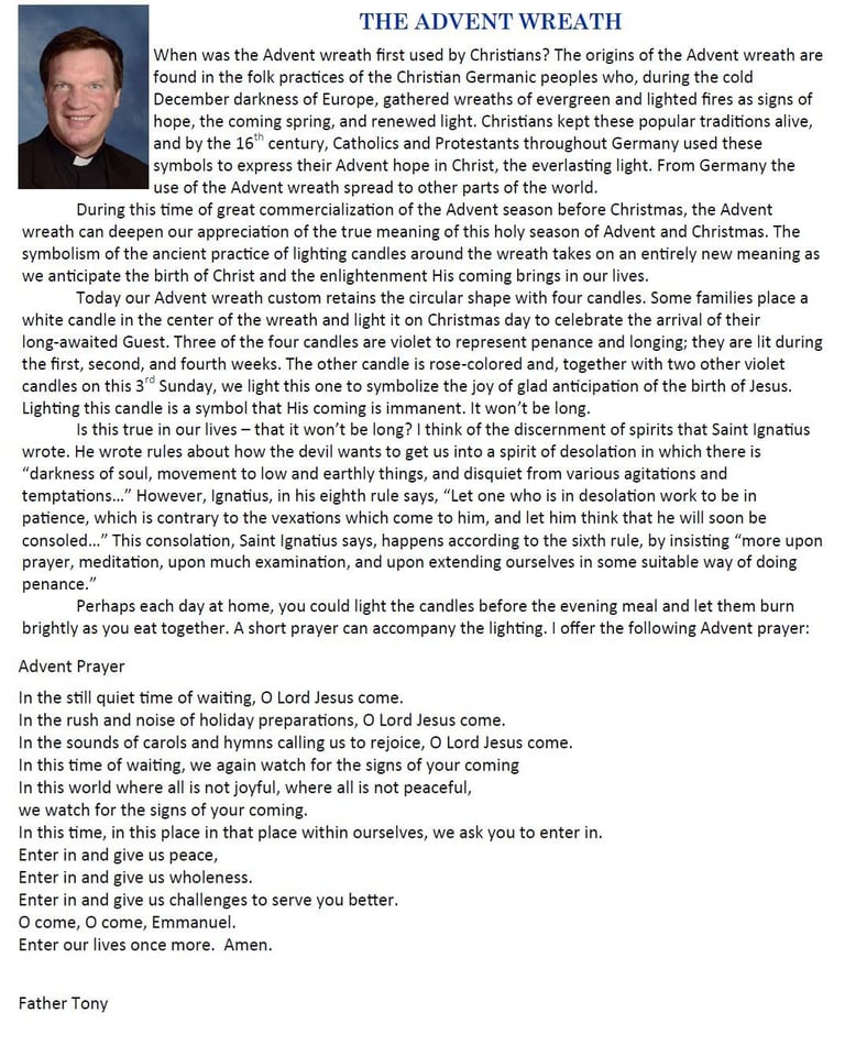 2nd Sunday of Advent Message from Father Tony