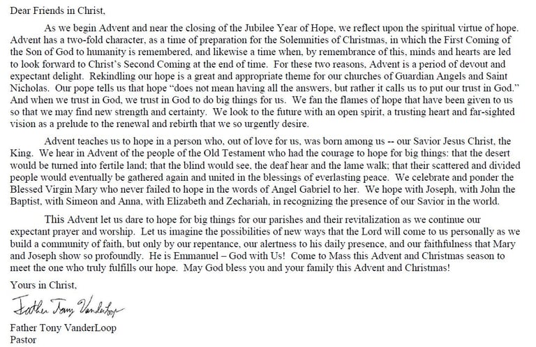 Christmas Letter from Father Tony
