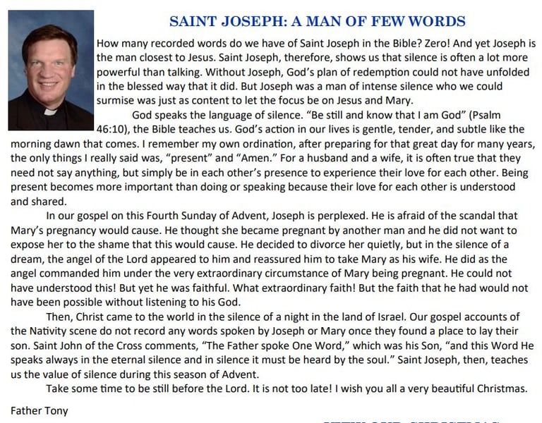 4th Sunday of Advent Message from Father Tony